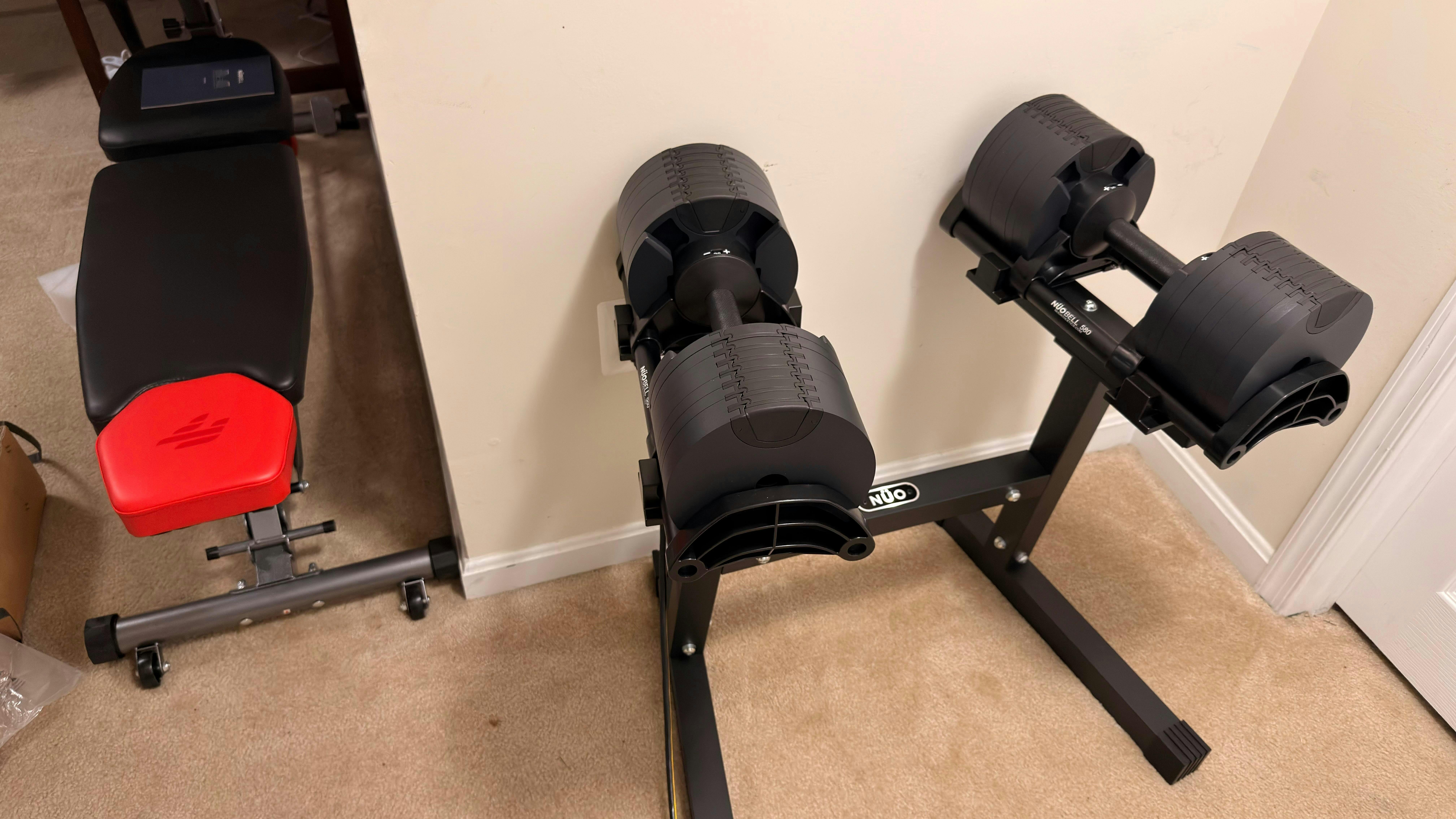 Great rack for storing the Nüo adjustable dumbbells. They are tall and adjustable and sturdy. Great Product!