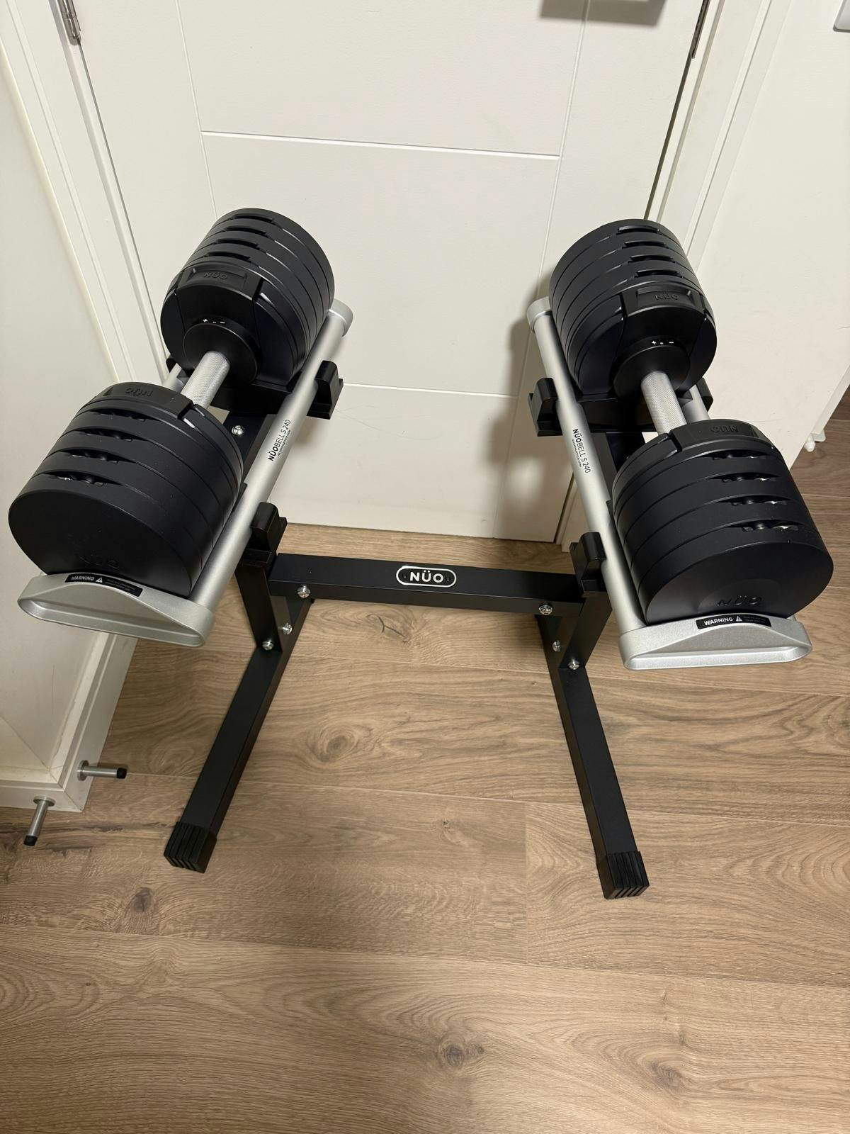 We didn’t want to clutter the space with forty different dumbbells, so we opted for the NÜOBELL S240, mainly because of its excellent reviews and the impressive 40kg range. So far, we’re very happy with the choice. Will we - or rather, my husband - ever need the full 40 kg? Who knows. But better safe than sorry.